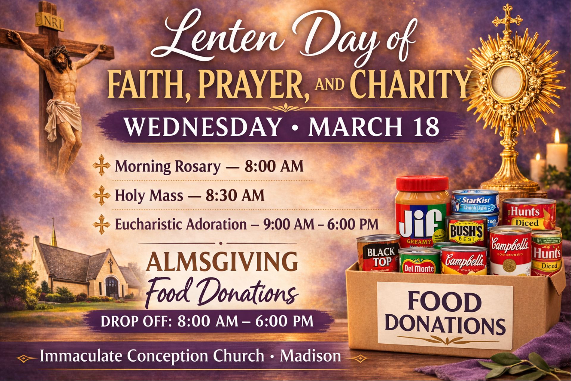 EUCHARISTIC ADORATION: Wednesdays During Lent: 9:00am to 6:00pm