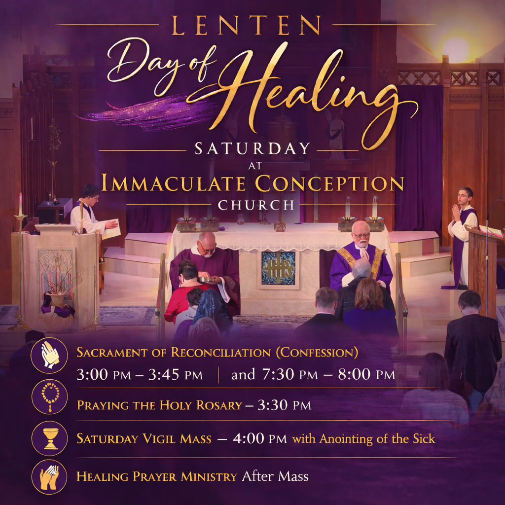At Immaculate Conception, Baptisms are ordinarily celebrated in a communal setting, reminding us that we are welcomed into the larger family of God. Families who desire a private Baptism are asked to meet with a priest or deacon prior to attending the preparation class. While we strive to be accommodating, not all requests can be fulfilled.