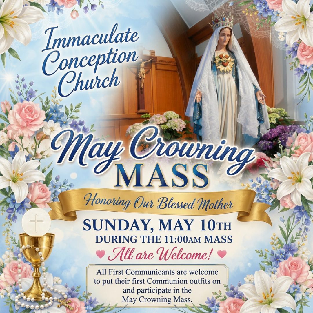 At Immaculate Conception, baptized children ordinarily receive their First Holy Communion at the end of second grade, following two consecutive years of Faith Formation. For more information or to begin the process, please contact the parish office. We look forward to walking with your family as you prepare to encounter Jesus in the Most Holy Eucharist.