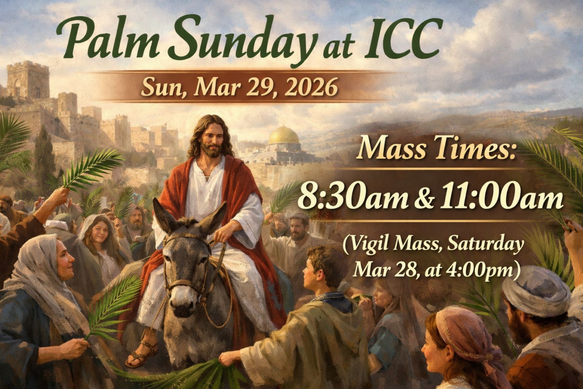 MASS TIMES: Saturday: 4:00 p.m. (Vigil Mass) - Sunday: 8:30am and 11:00am